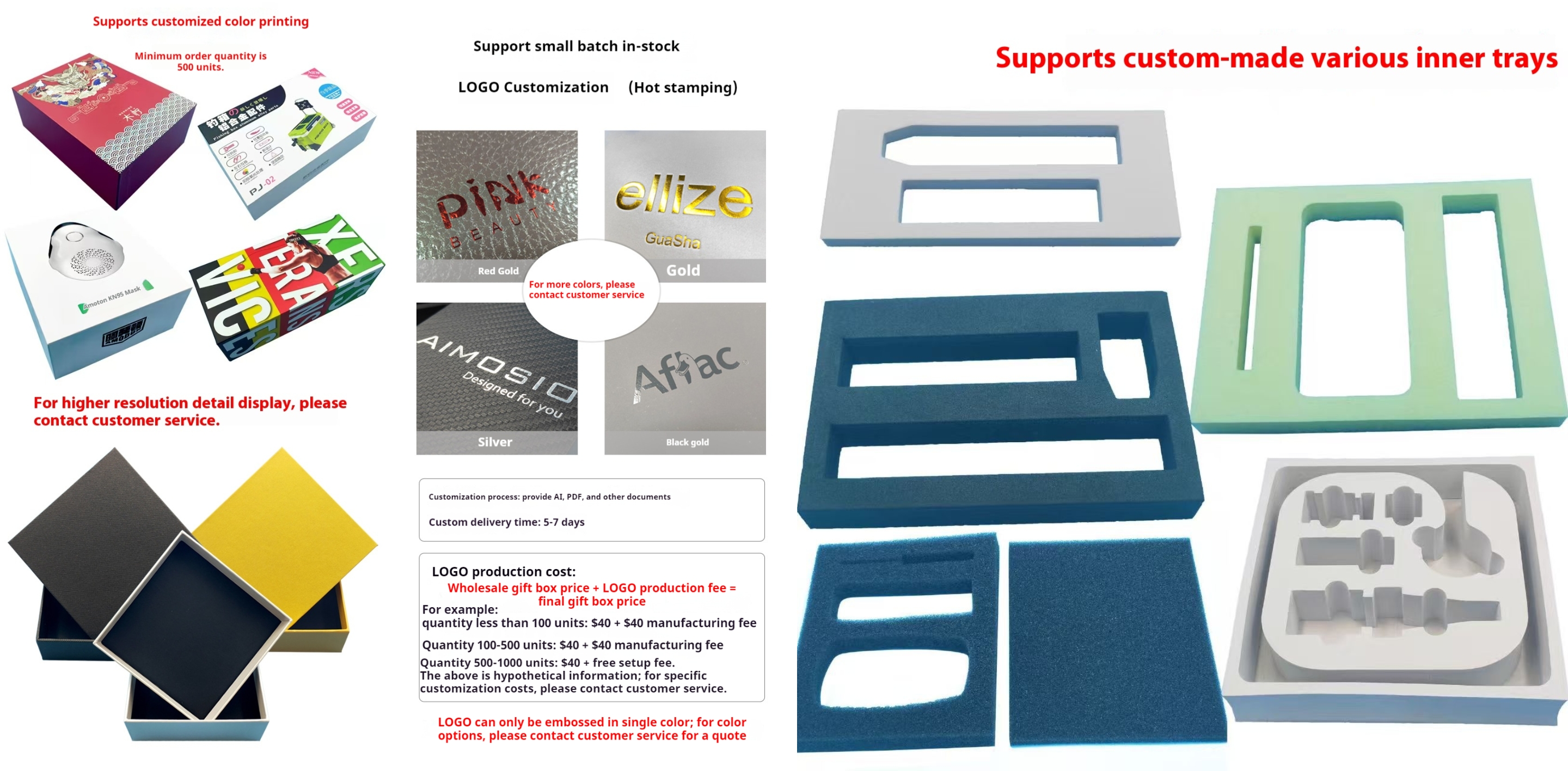 500pcs(different box size with different MOQ)